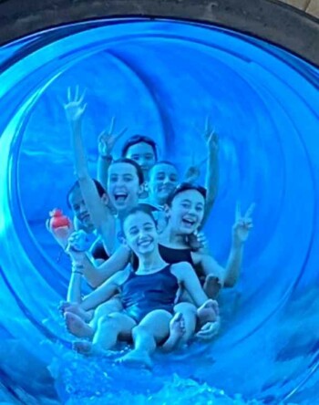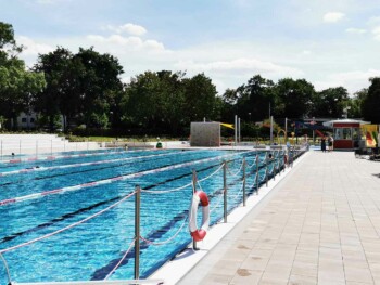 Kletterwand, Aufblasbare Wasserspielgeräte, Spritzkanonen, Wasserfontäne, Familien-Rutsche, Kinderrutsche, Aquakurse, Liegewiesen, Babywickelraum, Wickeltisch, Kindergeburtstagsparty, Spielplatz