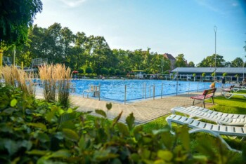 Familien-Rutsche, Kinderrutsche, Schwimmkurse, Liegewiesen, Snackbereich, Babywickelraum, Wickeltisch